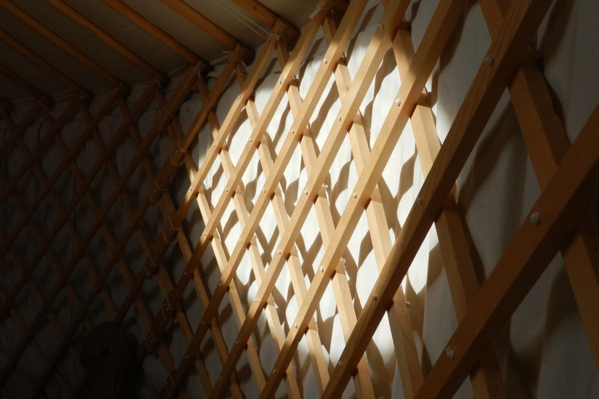 Die Holzkonstruktion bildet das Rückgrat der Jurte und bestimmt maßgeblich ihre Stabilität und Lebensdauer.