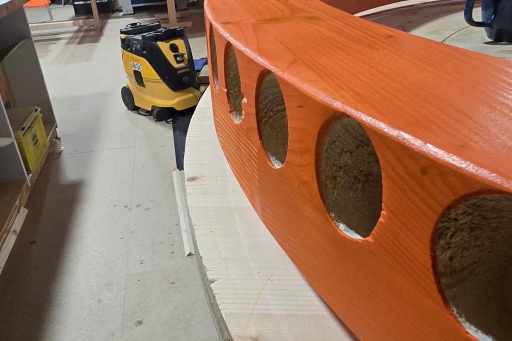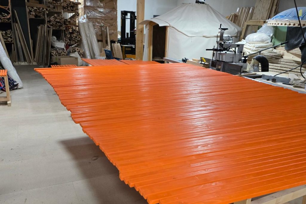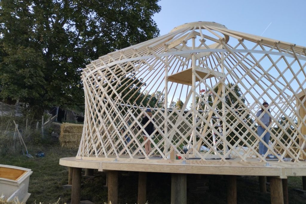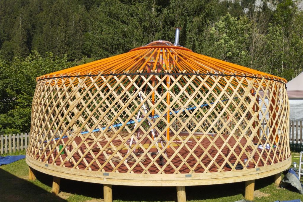 Gefertigt wurden Holzgitter, Dachring, Dachstangen sowie Boden- und Eingangselemente. Alle Bauteile sind so ausgeführt, dass sie sich präzise fügen, stabil stehen und gleichzeitig die traditionelle Bauweise der Jurte sichtbar bleibt.