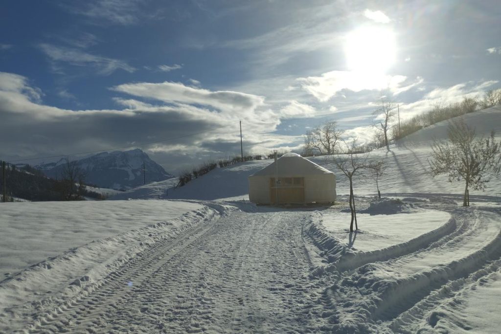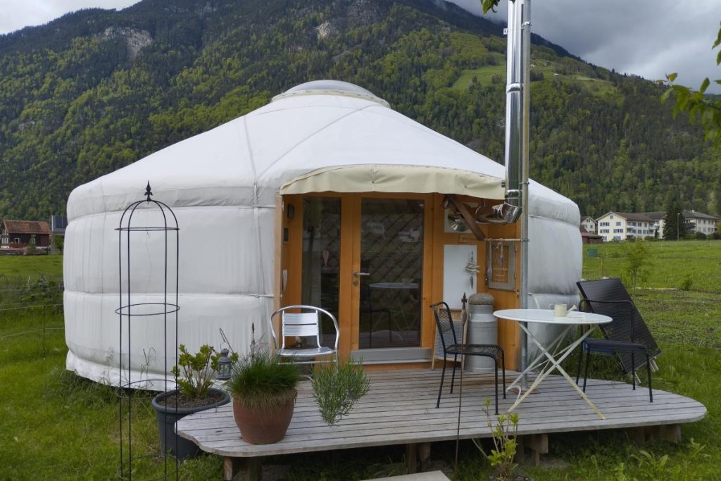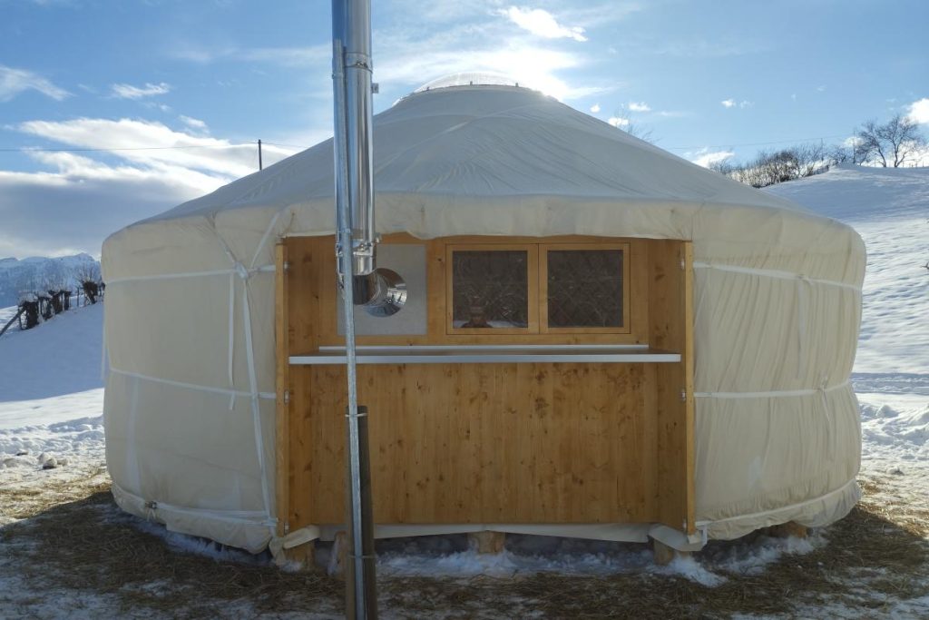 Die Jurte ist ganzjährig nutzbar und fügt sich harmonisch in die Umgebung ein.
