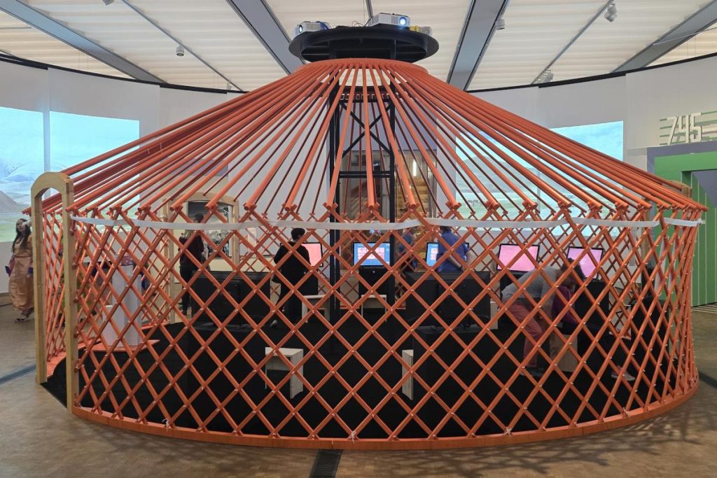 Die Jurte dient als begehbarer Ausstellungsraum und ermöglicht Besucherinnen und Besuchern einen direkten Eindruck von Form, Raumgefühl und Konstruktion einer mongolischen Jurte.