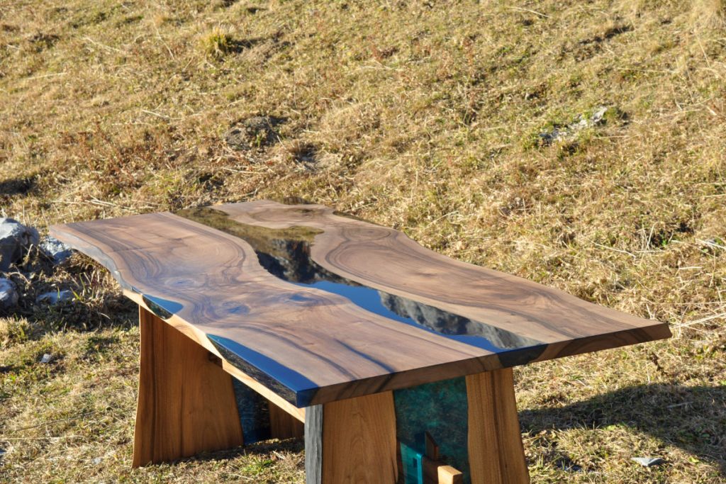 Epoxidharz-Tisch aus Nussbaum-Mondholz