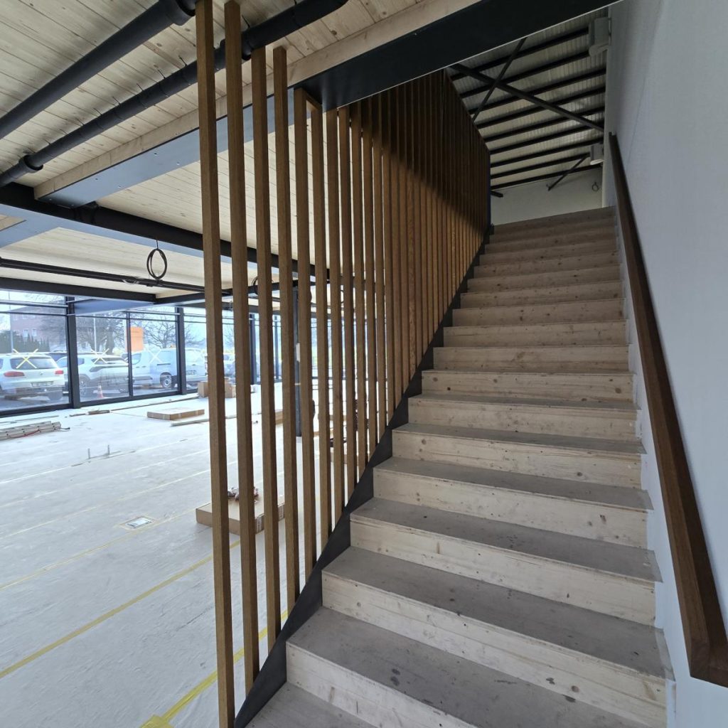 Für einen Ausstellungsraum entstand ein massives Staketengeländer mit Handlauf, kombiniert mit dezent integrierter Beleuchtung.